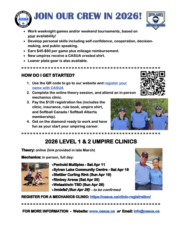 2026 SOFTBALL UMP CLINIC COMING TO STETTLER